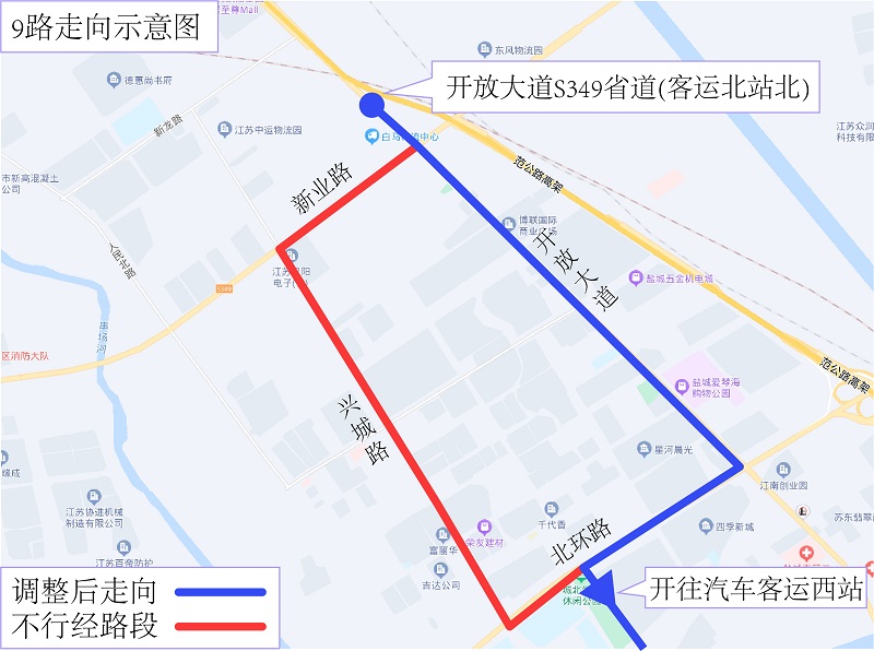 因新業(yè)路(開(kāi)放大道至興城路段)道路施工,6月1日起,公交9路和60路實(shí)行臨時(shí)改道行駛,具體如下: